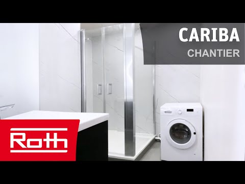 La paroi de douche de gamme CARIBA 2 éléments dont une porte coulissante sans seuil et un élément fixe modèle CARIBA CID2R/L de marque Roth pour montage en niche, en "u" ou en angle